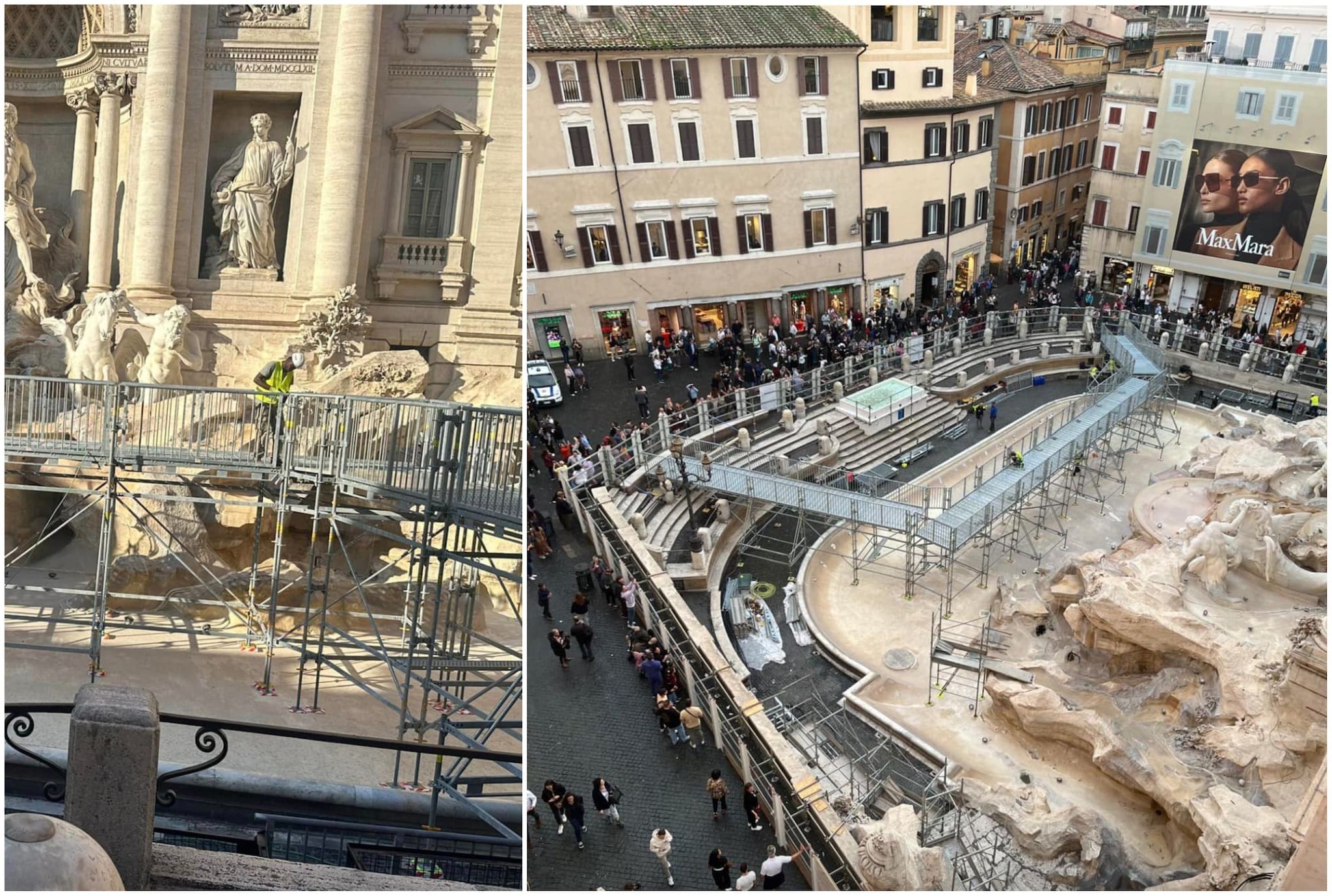 Una passerella è stata installata a Fontana di Trevi per consentire ai visitatori di avvicinarsi al monumento durante i lavori di manutenzione straordinaria.